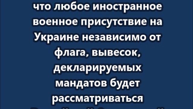 Любое иностранное военное присутствие на Украине будет рассматриваться как угроза России
