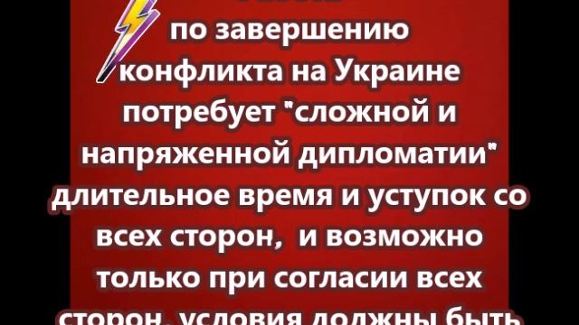 Работа по завершению конфликта на Украине потребует "сложной и напряженной дипломатии"