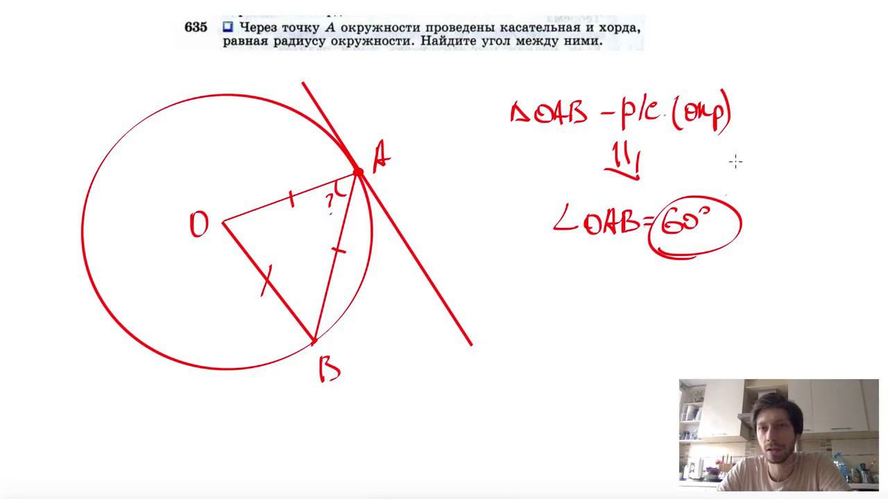 №635. Через точку А окружности проведены касательная и хорда, равная радиусу окружности. Найдите угол между ними. Поддержать канал рублём - 5469400944002125 (Сбербанк) Мой второй канал для подготовки к ЕГЭ и ОГЭ - https://www.youtube.com/ЕвгенийСумин Инстаграм - https://www.instagram.com/EGE_OGE.math Личный инстаграм - https://www.instagram.com/ee_sumin VK - https://vk.com/evgeniysumin FB - https://www.facebook.com/EvgeniySumin