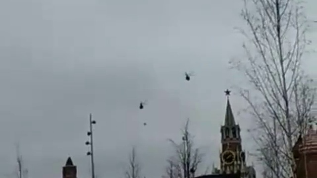 В сети появился ролик, как с площадки возле Кремля взлетели два вертолёта Ми-8. Один из вертолётов тащит за собой сетку и многие разглядели в ней «три силуэта, похожих на людей». Вертолёты пролетели над районом станций метро Новокузнецкая и Павелецкая. Что это такое – неизвестно.