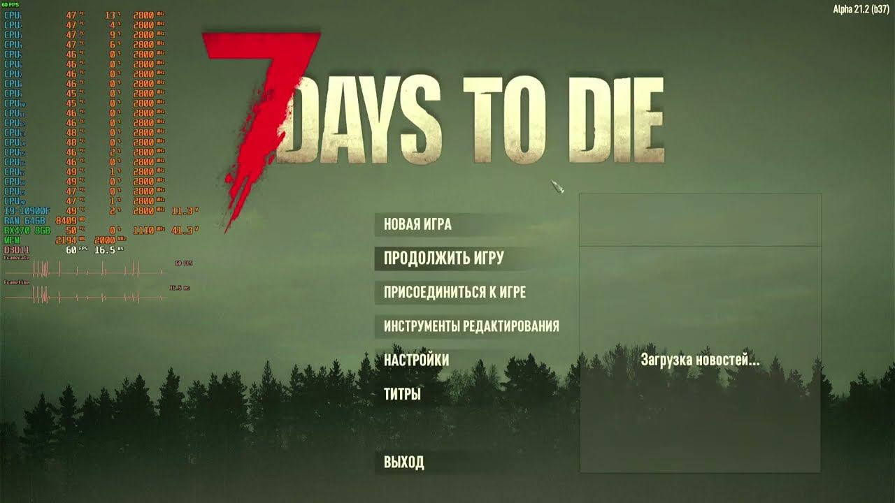 Game: 7 days to die Сomputer characteristics: Socket: LGA 1200 Motherboard: MSI MAG B560 MORTAR WIFI Processor: Intel core i9 10900F 2.8GHZ Liquid cooling systems: ID-Cooling FROSTFLOW X 360 RAM: 64GB DDR4-DIMM 2933 GPU: AMD Radeon RX470 8GB ROM: M2 SSD 256 OS+M2 SSD GAME+HDD 500GB+HDD 2TB+HDD 1TB Video in 1920x1080 resolution. Operating system: Windows 10 Pro --- Timecodes - 0:00 - The beginning of the video