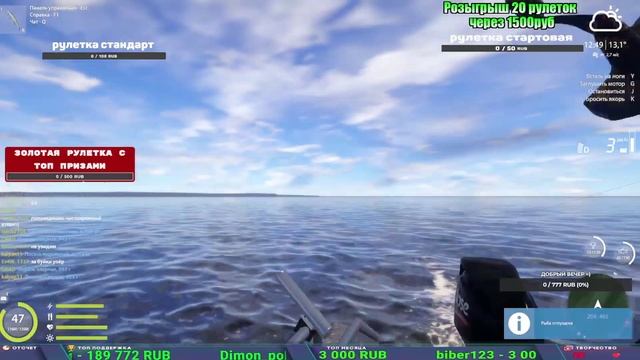 Поддержка донатом https://new.donatepay.ru/@1032463 Альтернативный донат https://www.donationalerts.com/r/kalyamba11 5536913964533059 карта Тинькоф Если стрим лагает,смотри стрим на трово https://trovo.live/s/Kalyamba_na_Ribalke Мой ВК - https://vk.com/kalyantv НИК в игре kalyan11 НАШ ДИСКОРД СЕРВЕР https://discord.gg/QhtSPKp3 Заказ водоема на 1 час - 500р ( весь стрим 2500р ) Модерка на канале 1200р ( каждая следующая на 100р больше) Озвучка доната на 40р,50р,100р,200р,300р,500р,1000р ✅Призы в рулетке "ЗОЛОТАЯ" ✔ ЗОЛОТО ✔ ПРЕМ ✔ КАТУШКИ ЮБИЛЕЙНАЯ БОРЕЛИКА, ВЕНГИ, ТАЙГА, СИЛЬВЕР 80, И другие ✔ ПАЛКИ ПИЛКЕРНАЯ, ДОНКА МОРСКИЕ, ✔ РОД ПОД, СТУЛЬЯ ✅Призы в рулетке СТАНДАРТ : ✔ катушкИ ЮБИЛЕЙНАЯ БОРЕЛИКА, ВЕНГИ, ТАЙГА, СИЛЬВЕР 80, И другие ✔ катушки 60 для медного ( ЭВИИ, НАТОРЫ, ГОЛДА, и тд) ✔ ПИЛКЕРНОЕ УДИЛИЩЕ КОРОЛЕВА ОКЕАНА ✔ Морское Донное удилище ✔ прем ( 3, 7, 30 дней) ✔ золото ( 1, 3, 5, 10, 20 ,50) ✔ билет на море ( 1, 3, 5 дней) ✔ голд наживка и др. ✅Призы в рулетке "СТАРТОВАЯ" ✔ катушка "silver80" ✔ катушка "БЕЛЫЙ КАЛИБР" ✔ катушка "Черный калибр" ✔ катушка "Протон" ✔ катушка "Нарга 6000" ✔ Набор Фидерист и спинингист ✔ Карповик Фортуна ✔ фидерные удилища ✔ прем, золото, алкашка, наживки и тд P.s Рулетка это не казино, а награда за поддержку стримера. Вечный ТОП ПОДДЕРЖКИ (11.05.2024) 1. Dimon_pokemonchik 119 784 2. Interceptor 75 508 3. Skreb79 71 261 4. une personne 68 619 5. Нарвал77 31 550