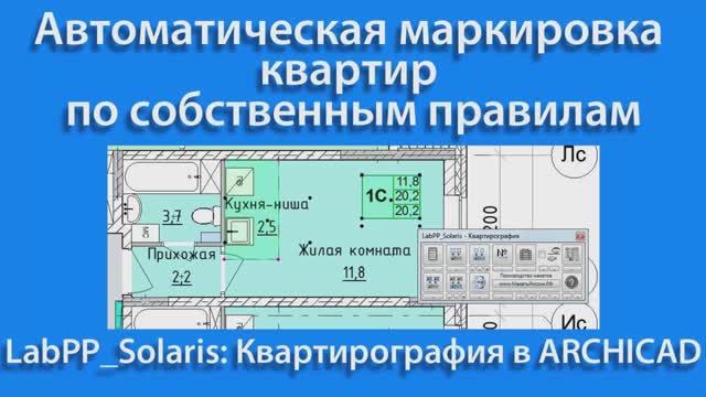 Пример дополнительной автоматизации - по определенным правилам маркеру квартиры присваивается соответствующий тип. Появилось требование чтобы типы квартир назначались в зависимости от их набора помещений. Создан небольшой дополнительный текст программы LABPP, который запускается при расчете площадей маркера квартиры. Он анализирует комнаты, входящие в квартиру и назначает в маркер квартиры соответствующий тип.