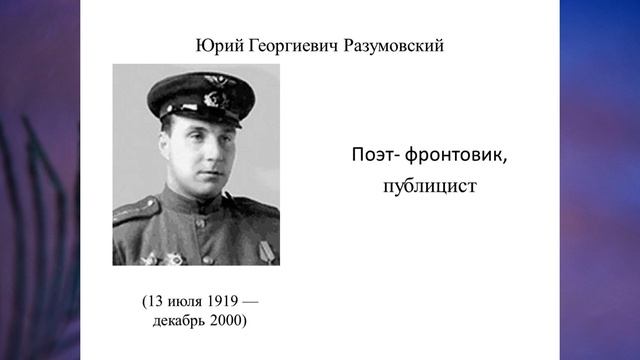 Интервью с участником ВОВ Юрием Георгиевичем Разумовским о военной поэзии