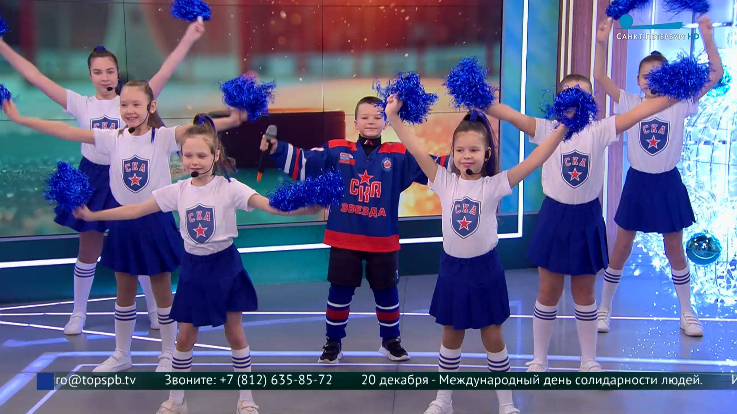 В студии программы «Утро в Петербурге» Анна Соловьёва, художественный руководитель детского музыкального коллектива «Хитрюшки», Ярослав Малков, главный тренер команды «Ска-звезда» и юный хоккеист Платон Михайлов.
