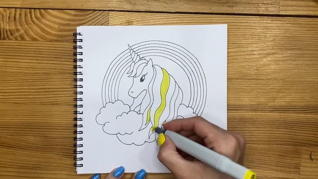 Рисунок скетч маркерами "Единорог" для скетчбука | Срисовка картинки для начинающих