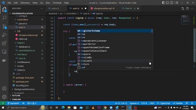 FULL STACK COURIER SERVICES APPLICATION ( ANGULAR NODE JS | TYPESCRIPT AND MSSQL | BACKEND) | DAY 8