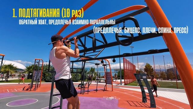 Тебе больше не нужно ничего, кроме этого комплекса. Никаких абонементов в зал, тренеров, а только системный подход и 30 минут времени 2-3 раза в неделю. Эти упражнения прокачают все группы мышц (предплечья, бицепс, плечи, спина, ноги), при такой тренировке, твоя форма будет сохраняться в идеальном состоянии 365 дней в году вне зависимости от сезона. Ты к лету будешь готов в любое время. Действуй! Вот что я предлагаю: РАЗМИНКА (5-7 мин): - общий разогрев (резинка, махи, наклоны) ОСНОВНАЯ ЧАСТЬ (~40 мин): 4 подхода, в каждом: - 10 подтягиваний на бицепс (локти взаимно параллельны); - 15 отжиманий на брусьях (плавные опускания и подъем, в одном темпе, наверху «локти не вставлять»); - 40 приседаний приставными шагами; - 10 подъемов ног/коленей к перекладине/груди. Отдых между подходами 2-3 минуты. ЗАМИНКА (5-7): - растяжка (спина, ноги). #Воркаут, #workout, #похудение, weight loss, #чтотонаспортивном что-то на спортивном, как накачаться