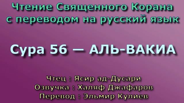 Чтение^Озвучка - Корана Чтец: Ясир ад-Дусари Озвучка: Халяф Джафаров Перевод: Эльмир Кулиев Источник YouTube канал: " Священный Коран "