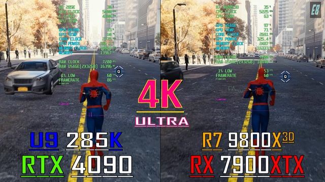 RX 7900XTX + RYZEN 7 9800X3D vs RTX 4090 + CORE U9 285K - How Big is the Difference in 4K?