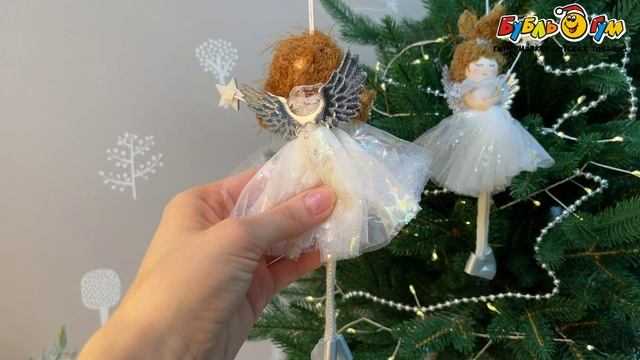 331074 Украшение елочное Ангел в пышном белом платье разноцветный 19см в ассортименте