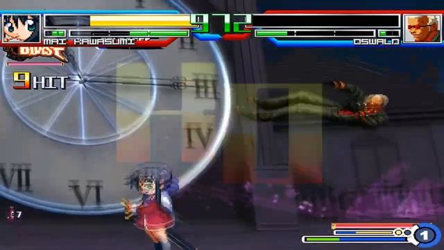 So I did do this battle during the KyoAni Special back in late July/early August. However, I did want to do this battle again so as to add onto the battle count for real (and not for specials and such)... Anyways, Oswald was as dangerous as ever, Able to combo you with ease, high defense, and an AI capable of taking you down fast! Of course, Mai showed him what the true leader of the Blue Suns was capable of yet again. Even so, I await the day for some of Nep Heart's characters to get the AI they needed. BTW, one of the teams in the tournament will be using Oswald, so if your team faces him, they'll have to be cautious. Anyways, tomorrow will be the start of Shiori's Adventure. It won't be as long as The Return of Linne, but I do hope you'll enjoy it! Characters used: Mai Kawasumi (Nep Heart) Oswald (Ikaruga) Stage: Touhou - Clock Tower 11:15PM BGM: EoSD - Lunar Clock ~ Lunar Dial