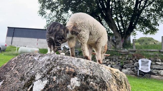 Овечка не хочет чтобы кошка сидела на её камне