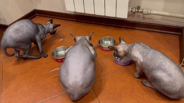 Угощаю варёным 🥩 мясом 😻 своих любимых сфинксов 💕