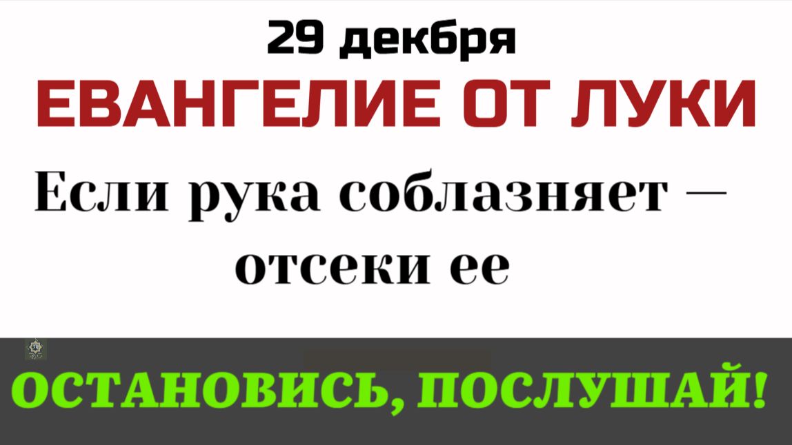 Евангелие дня 29 декабря (Понедельник). Христос произносит, пожалуй, самую суровую проповедь о борьбе с грехом. "Если глаз соблазняет тебя — вырви его". "Если рука соблазняет — отсеки ее". Неужели это призыв к физической расправе над собой? Что такое "жернов на шее" для соблазнителей? И страшная правда об аде: что означают образы "неугасимого огня" и "червя", который не умирает? Объясняем, почему иногда нужно быть безжалостным к своим привычкам. 🔔 Подпишитесь, чтобы спасти душу, а не потерять ее! Поблагодарить, поддержать: Сб. 2202 2061 0335 2154 (напишите имена в сообщение их помянут за богослужением, укажите, если инославные) Записки в храм https://ikoni.cerkov.ru/zapiski-v-xram/ #Евангелиедня #календарь #церковный #Евангелие #Ад #БорьбаСГрехом #Мк9 #Соблазн #Толкование #Православие #СтрашныйСуд #5минут Где ещё можно смотреть выпуски: Рутюб https://rutube.ru/channel/1540928/ ВК https://vk.com/clubmirprav TELEGRAM https://t.me/Mirprav www.optina.ru (молитва оптинских старцев) #мирправославия Нажимая на "Мне нравится" и "Рассказать друзьям" - вы помогаете распространению Слова Божьего!
