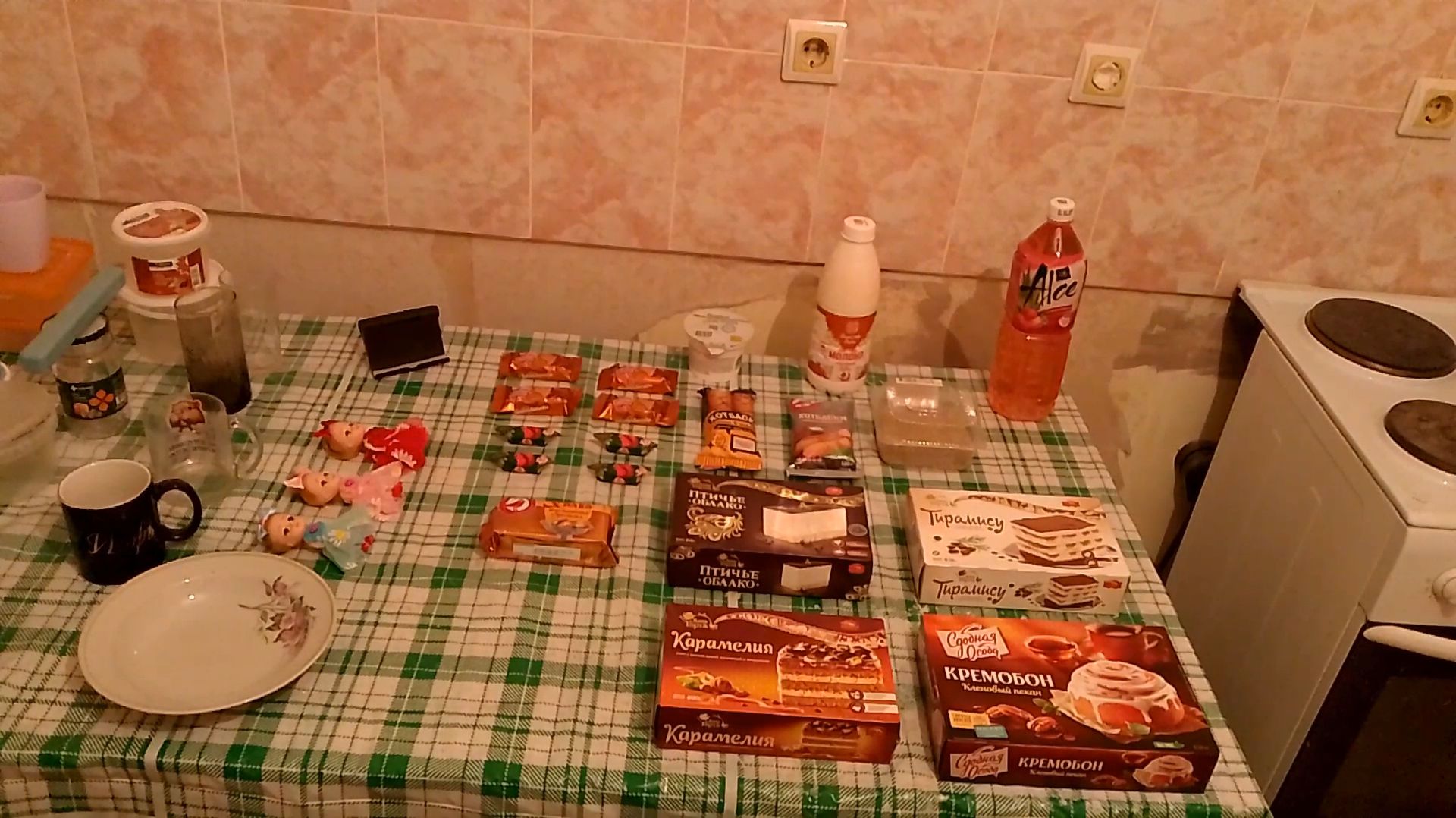Кремобон+Торты Карамелия+Птичье Облако+Десерт Италия Тирамису+Сосиски В Тесте+Конфеты+Напитки(24.25)