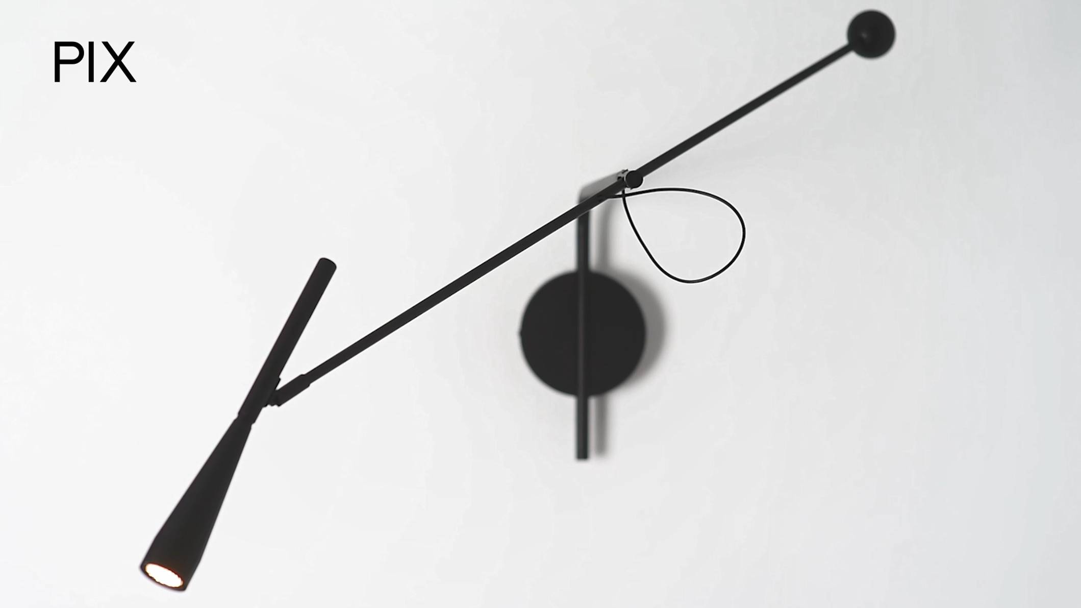 PIX ― минималистичный дизайн настенного светильника c поворотным плафоном c honey comb. Диаметр корпуса - 16мм. Поворотность плафона - 350° по вертикали, 180° - по горизонтали. На конце - модный декор в виде шара для противовеса.