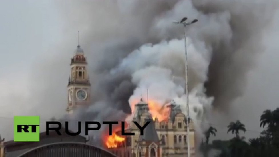Бразилия. Пожар на исторической музейной станции (21.12.2015 г.)