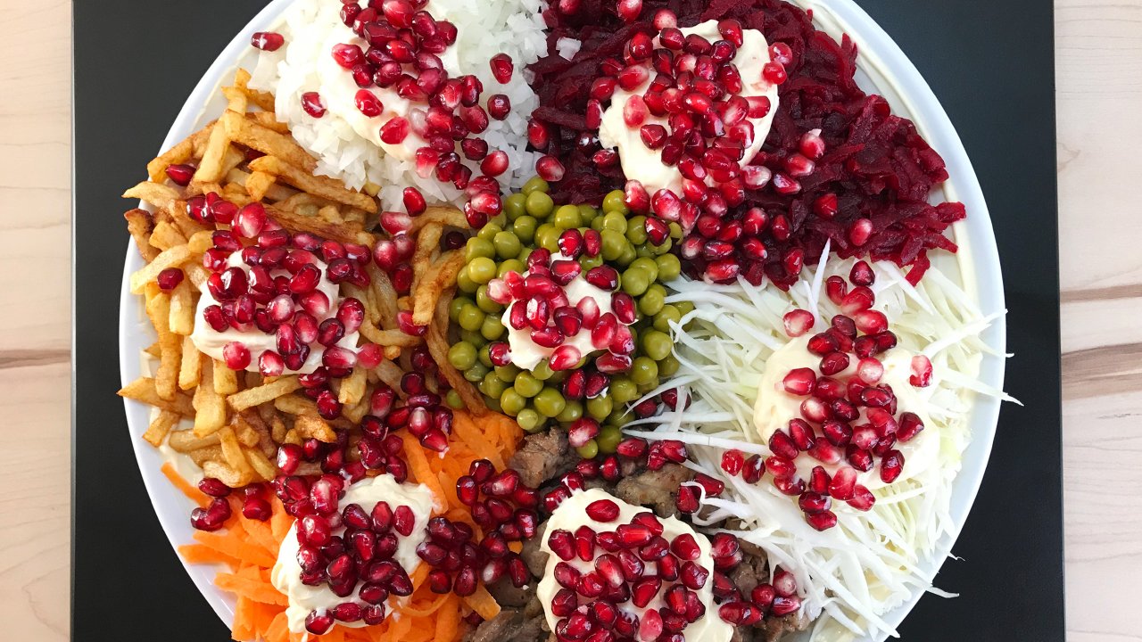 Вкусный Салат с мясом "Радуга". Семейный рецепт.