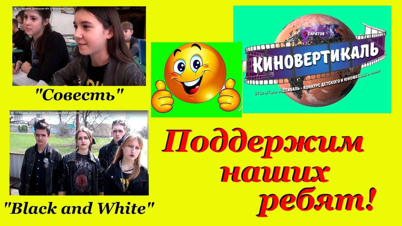 Многие зрители моего канала знают, что я работаю с детьми и мы создаём разные видео... В этом году у нас много заявок и одна из них г.Саратов, детский кинофестиваль "Киновертикаль". Мы подали две работы. Ждём начала фестиваля и результатов. А сейчас идёт борьба за "Приз зрительских симпатий". Победит работа, набравшая больше всего лайков. Заходите по ссылкам, смотрите и ставьте лайк (если понравится) - поддержите наших ребят! "Совесть": https://youtu.be/3i3WVgxCrjM?list=PLlUPenH-FFPau0s-lbla8n67Bs2DssMhf "Black and White": https://youtu.be/9ghSTANpQD0?list=PLlUPenH-FFPau0s-lbla8n67Bs2DssMhf