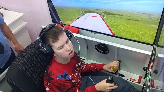 Даниэль на тренажере самолета