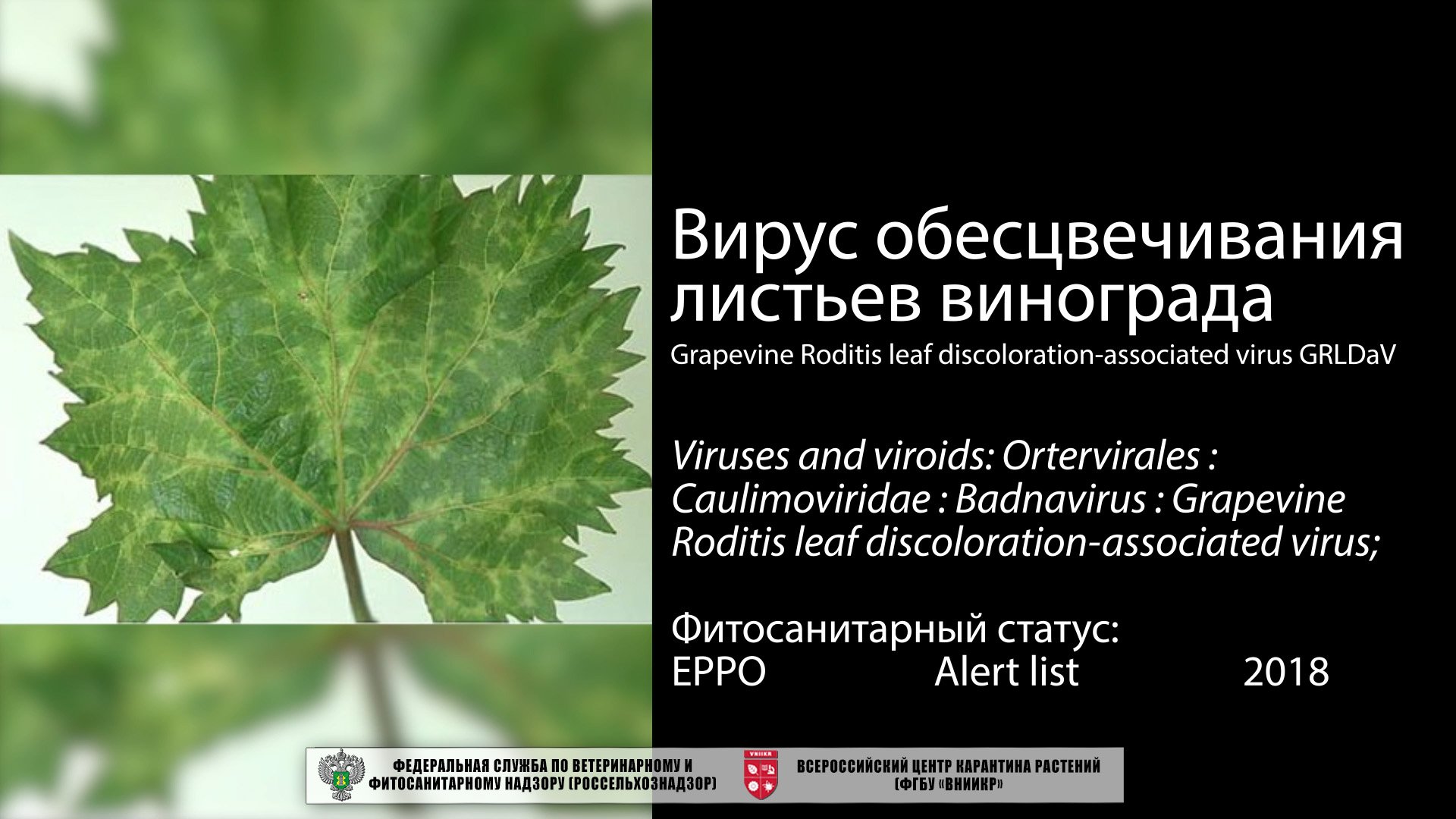 Вирус обесцвечивания листьев винограда (Grapevine Roditis leaf discoloration-associated virus)