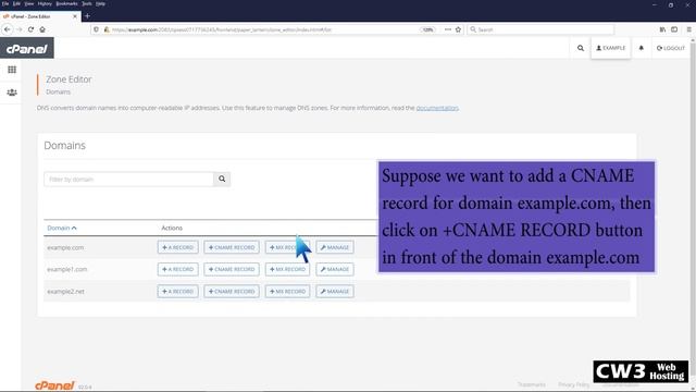How to add CNAME Record in cPanel using the DNS Zone Editor with The CW3 Web Hosting