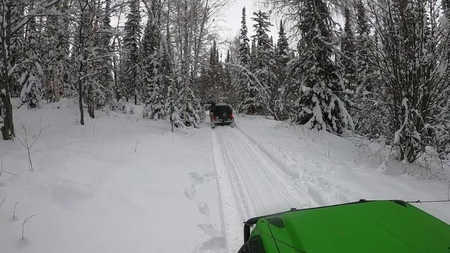 Прохождение авто по заснеженной,лесной дороге.