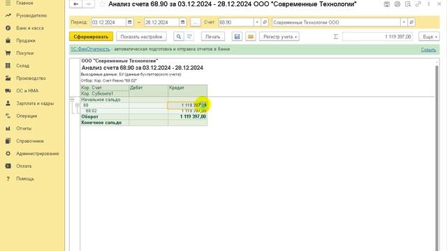 Формирование ведомости ЕНС в 1С