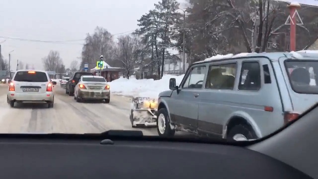 Димитровград. Очевидцы сняли на видео автомобиль "Нива" с приделанным к нему снегоуборочным скребком. #прикол #нива #зима #россия