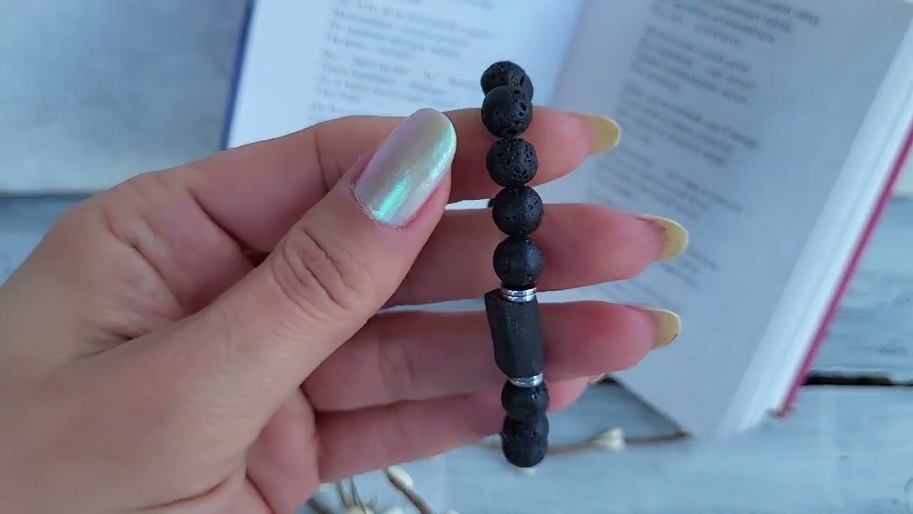 Браслет из вулканической лавы, черного турмалина, гематита