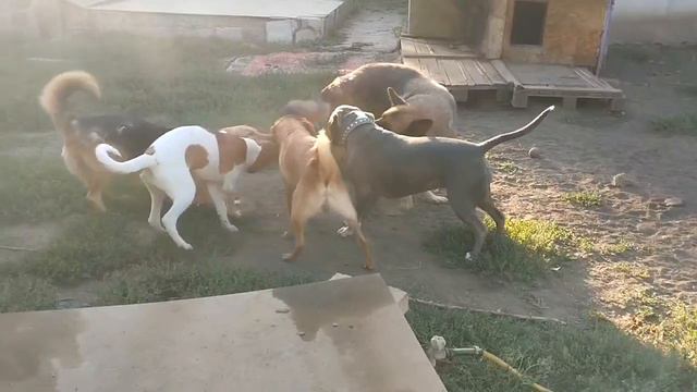Собачки гуляют двумя компаниями