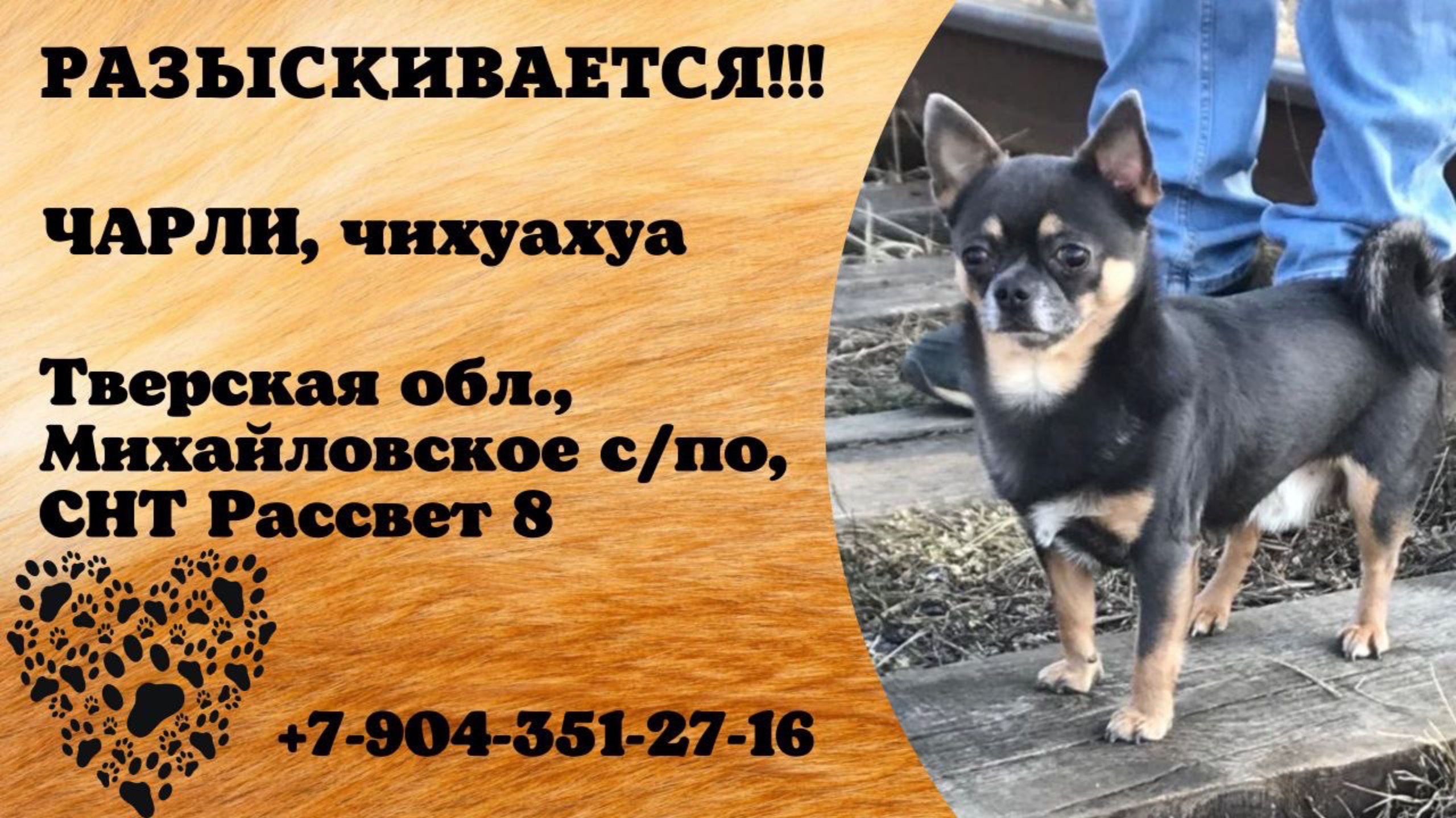 Пропала собака! ЧАРЛИ, чихуахуа. Тверская обл., Михайловское с/по.