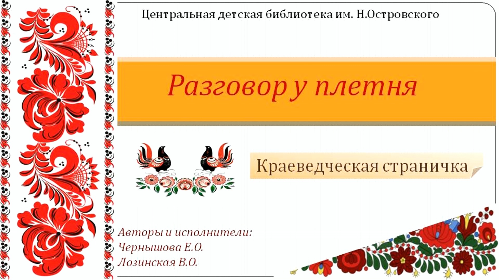 Краеведческая страничка «Разговор у плетня». «Частушки».
