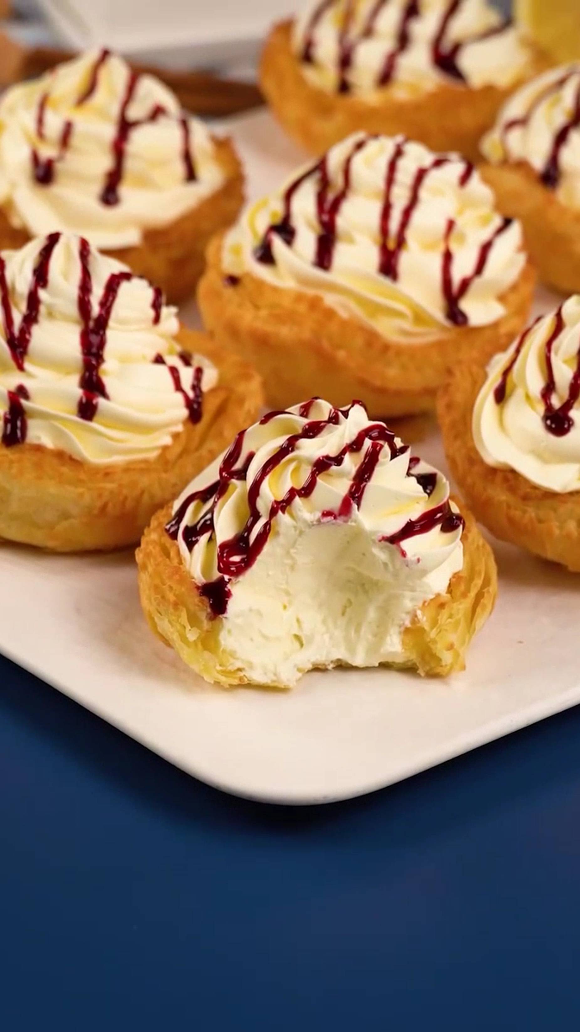 Они исчезнут через минуту! Идеальный кремовый десерт из слоеного теста