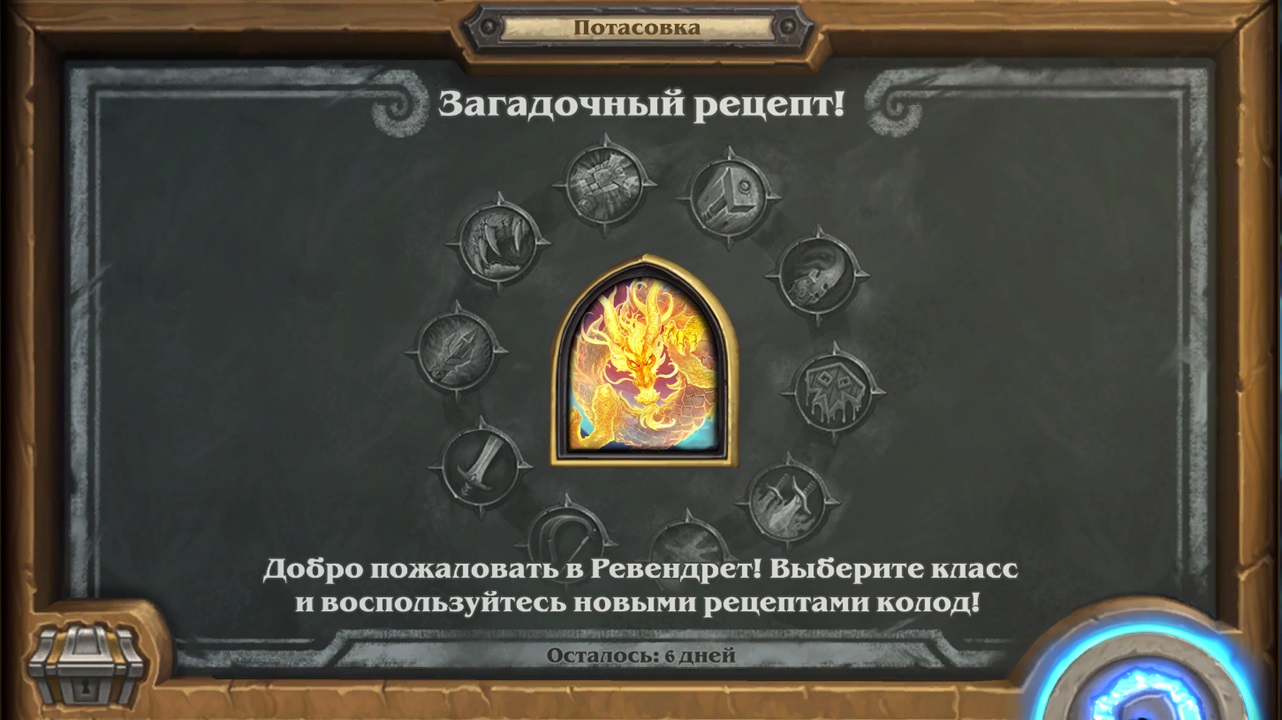 Потасовка в Hearthstone, в период с 31.08.2022 - 07.09.2022 Потасовка: Загадочный рецепт Добро пожаловать в Ревендрет! Выберите класс и воспользуйтесь новыми рецептами колод!