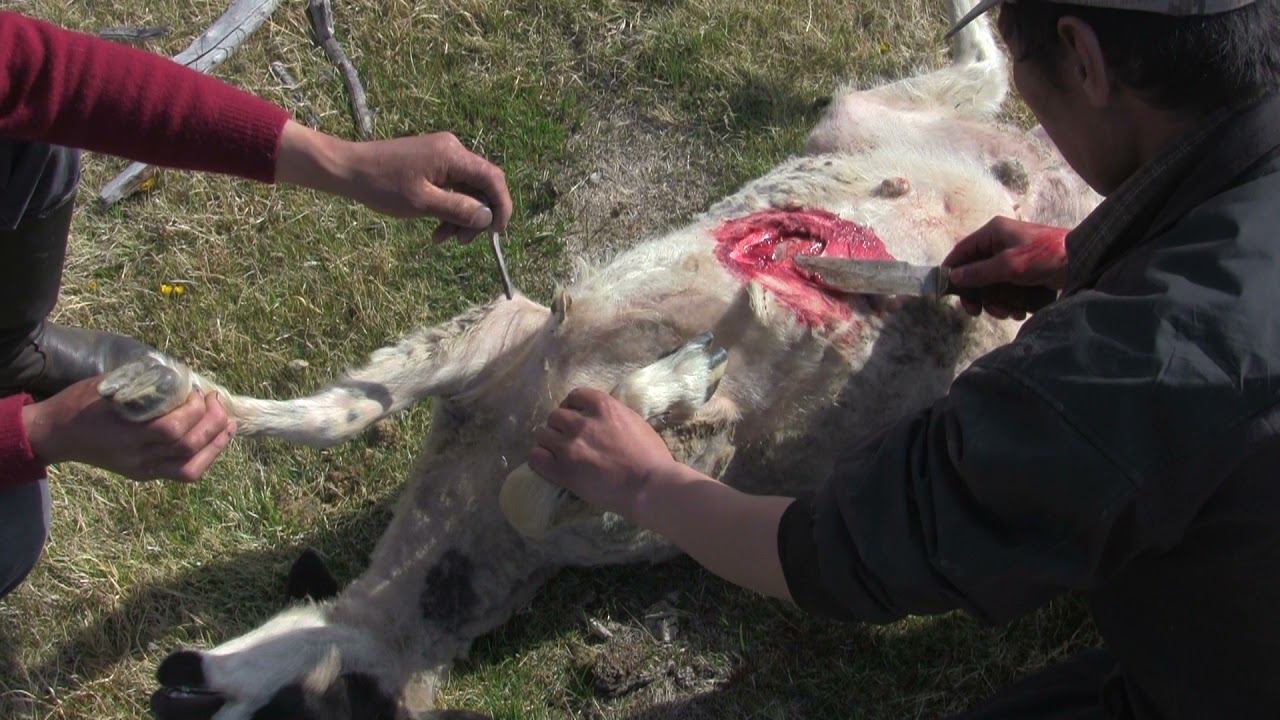 усыпление и разделка овцы, Монголия