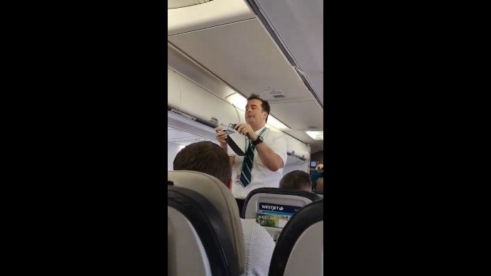 Весёлый стюард развлекает пассажиров в самолёте. #прикол #стюард #мем #самолет #весёлый #забава
