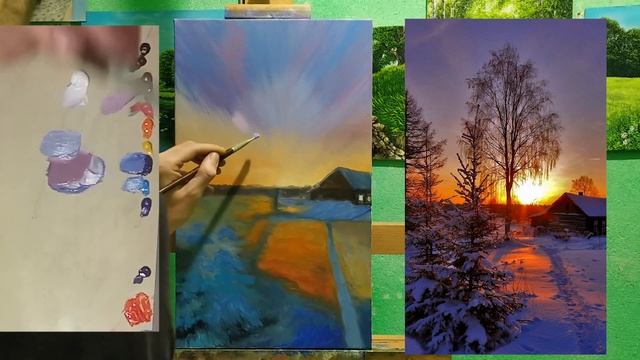Зимний рассвет маслом полное видио|winter landscape oil|Oil Painting Time Lapse