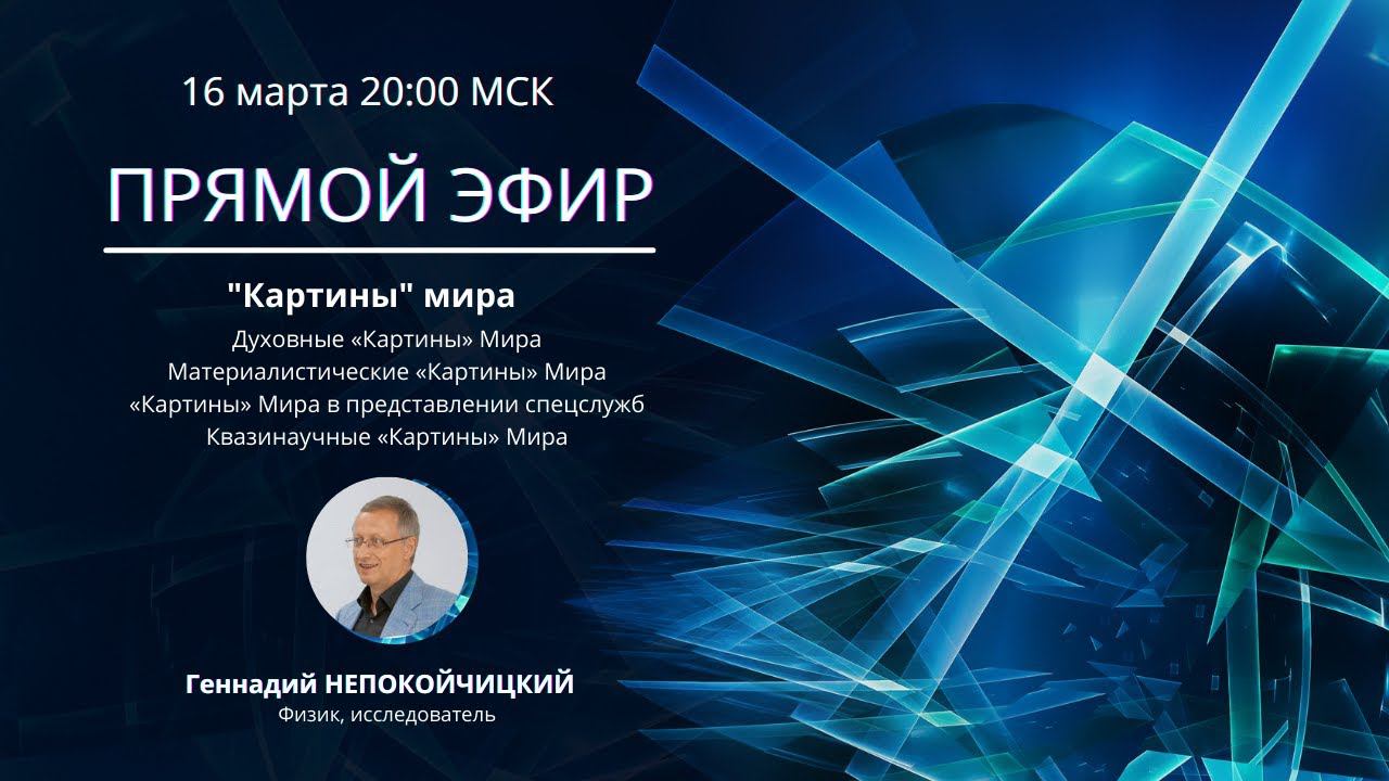 16 марта в 20:00 | ТВ ЭКСТРА: Специальный прямой эфир с физиком и исследователем. Геннадий НЕПОКОЙЧИЦКИЙ * Духовные «Картины» Мира Этнические «Картины» Мира Монотеистические «Картины» Мира Эзотерические «Картины» Мира * Материалистические «Картины» Мира Научные «Картины» Мира Гиперпространство Теория струн * «Картины» Мира в представлении спецслужб Эниология (генерал Ф.Р. Ханцеверов) Фундаментальный Интеллект Вселенной (генералы Б.К. Ратников и Г.Г. Рогозин) Ноокосмология (генерал А.Ю. Савинов) * Квазинаучные «Картины» Мира Избранник ВКР (Высшего Космического Разума) (генерал Е.И. Ливенцов) «Неоднородная Вселенная» (Н.И. Левашов) Ведущий эфира - руководитель и автор канала ТВ ЭКСТРА, организатор интерактивной конференции НЕПОЗНАННОЕ - Денис Овсянников ______ https://www.facebook.com/groups/tvextra/ - группа телеканала в Фейсбук https://t.me/nepoznannoe_online - подписывайтесь на телеграмм канал www.TVExtra.ru
