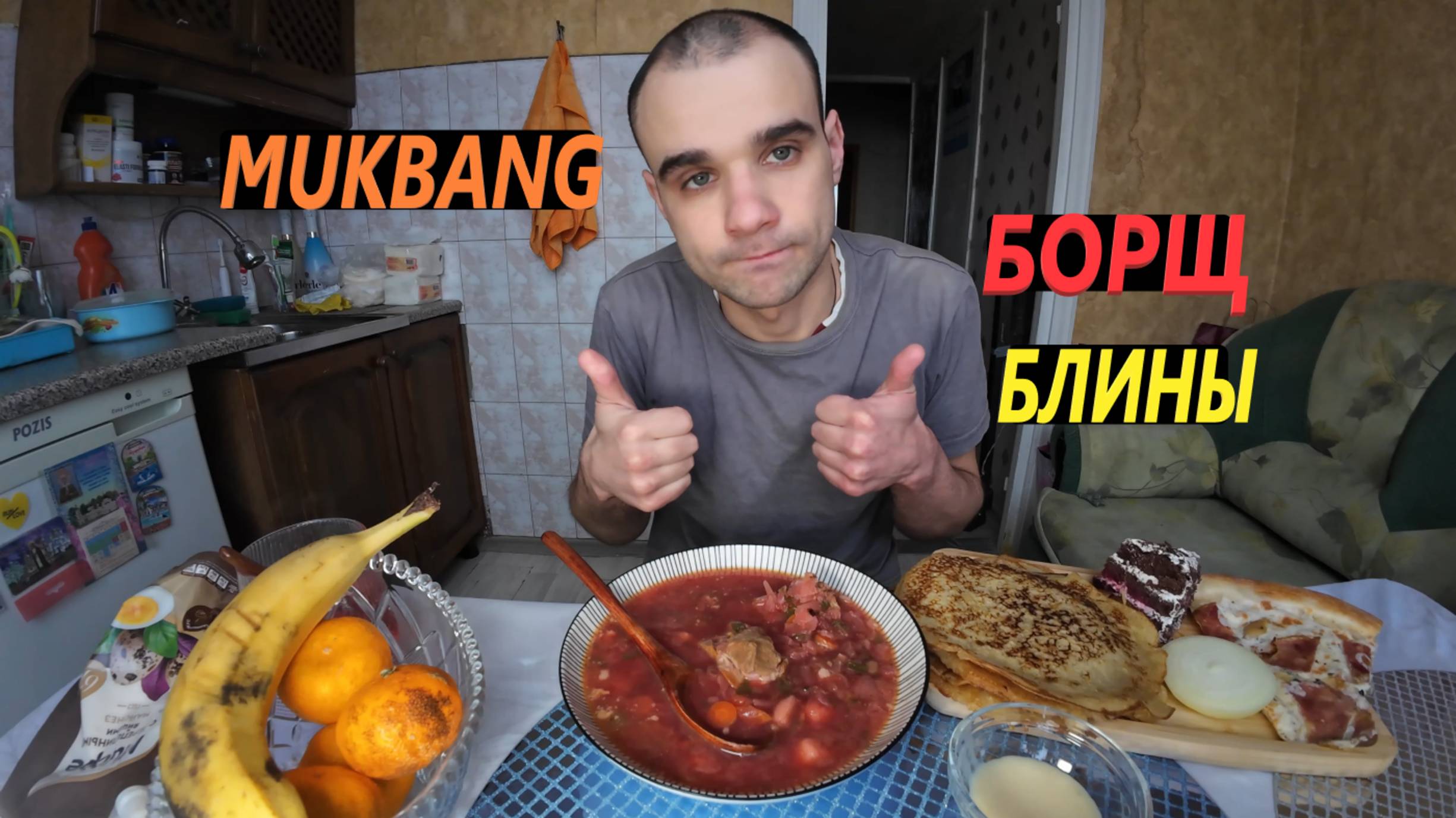 МУКБАНГ БОРЩ С МЯСОМ СВИНИНА / ПИЦЦА / БЛИНЫ / ТОРТ - ПИРОЖНОЕ / EATING MUKBANG ASMR АСМР