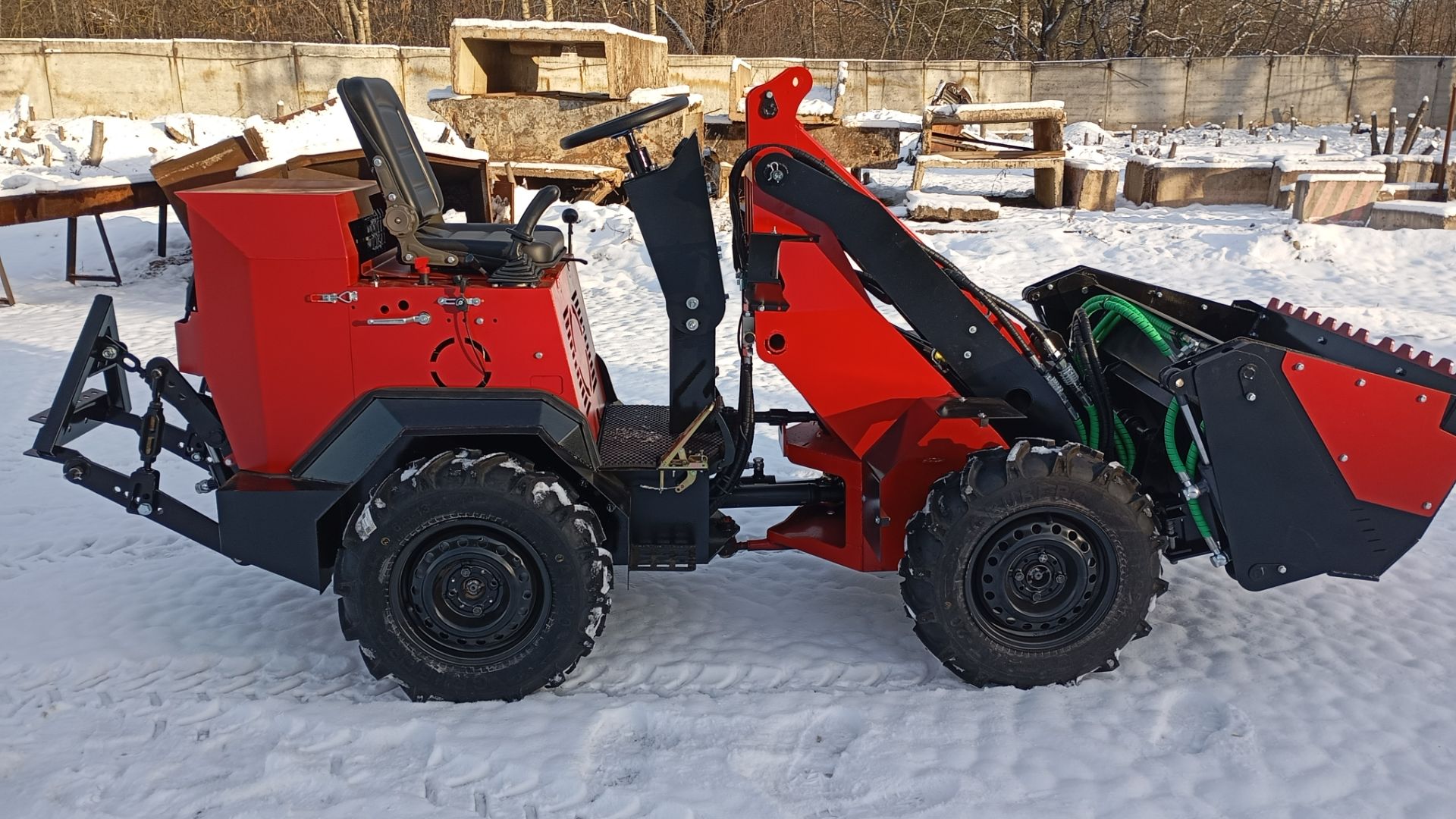 Самодельный минипогрузчик с задней навеской.