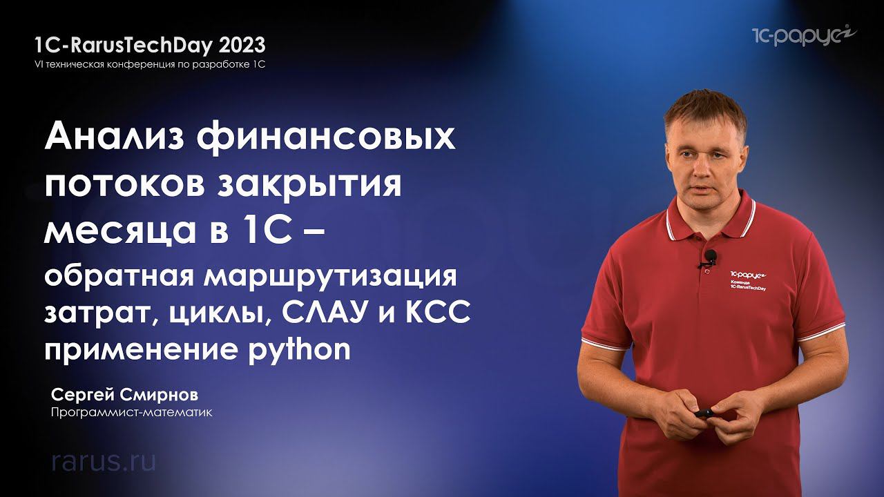 Анализ финансовых потоков закрытия месяца в 1С — обратная маршрутизация затрат, циклы, СЛАУ и КСС, применение Python. Смирнов Сергей, программист-математик. Программа конференции и отдельные записи докладов (будут добавлены после 24 июля 2023): https://rarus.ru/events/20230720-1c-rarustechday-2023-587081/ Список предстоящих мероприятий 1С-Рарус: https://rarus.ru/events/