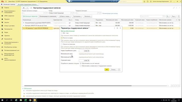 Расширенное обеспечение потребностей. Настройка поддержания запасов