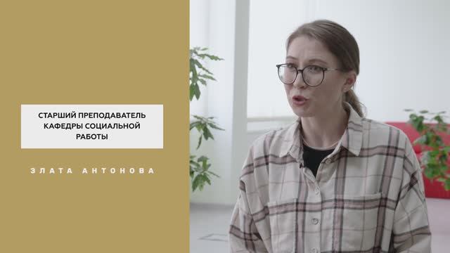 В рамках Года педагога и наставника продолжаем рассказывать вам о педагогах вуза, достигших высоких результатов в профессиональной деятельности. В новом выпуске старший преподаватель кафедры социальной работы Злата Сергеевна Антонова расскажет о своей профессиональной деятельности и работе со студентами.