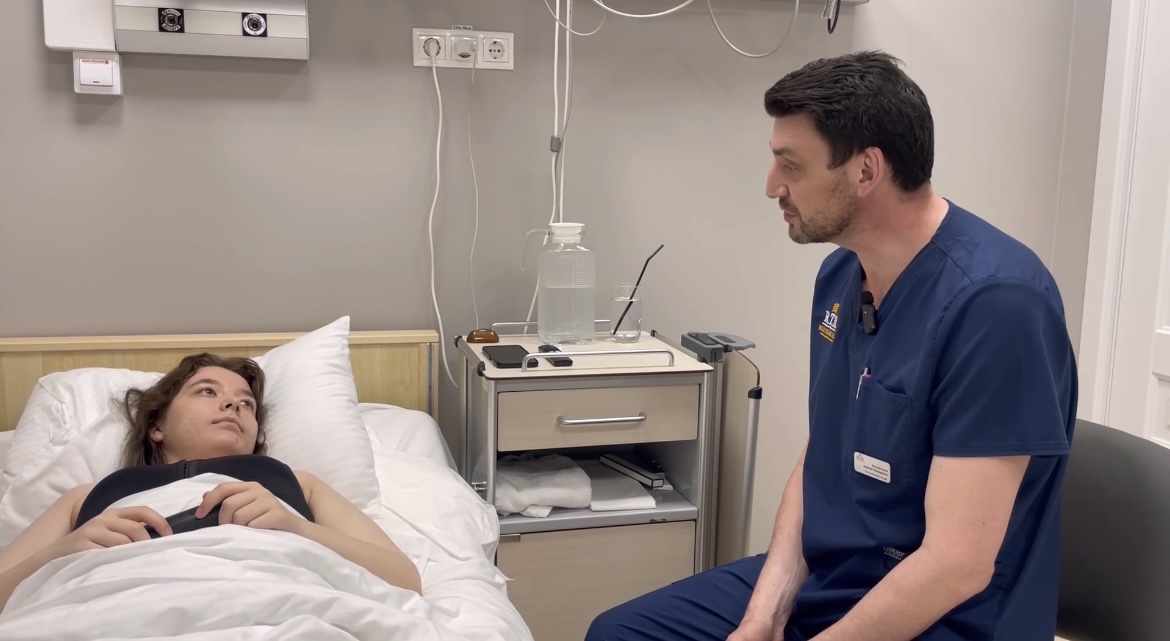 Пластический хирург Николай Константинов проводит утренний осмотр. Виктории была сделана операция по уменьшению и подтяжке молочных желез.