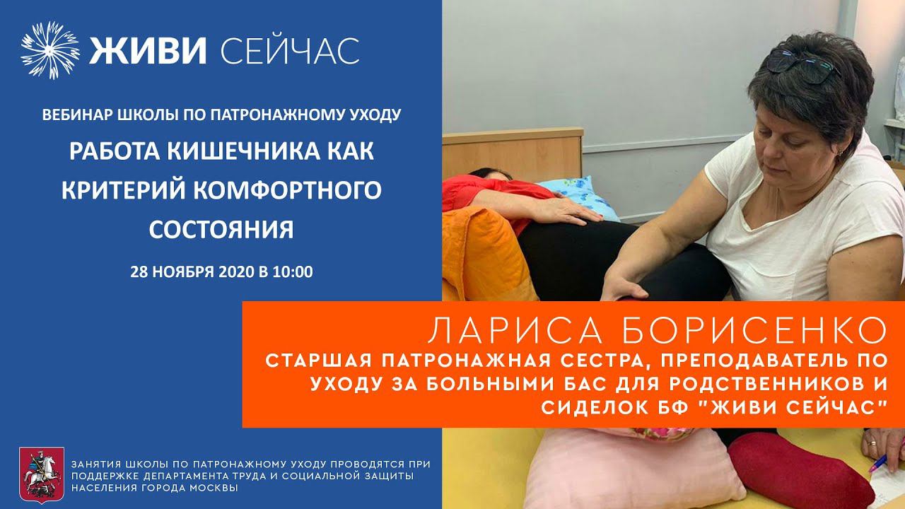 Ведущая вебинара – старшая патронажная сестра фонда «Живи сейчас» Лариса Борисенко. Вебинар проводится при поддержке Департамента труда и социальной защиты населения города Москвы. Сделать пожертвование в фонд "Живи сейчас": https://alsfund.ru/campaign/pomoch-fondu/
