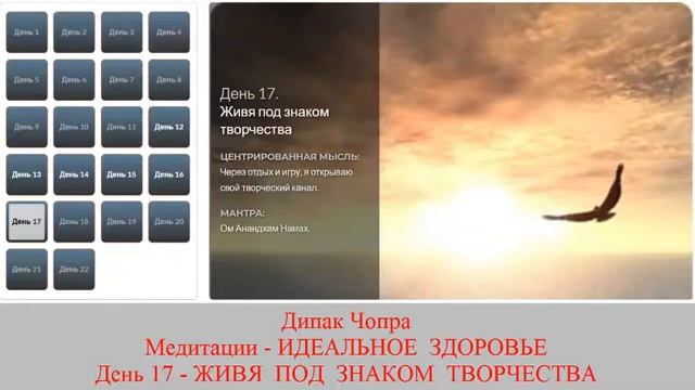 ИДЕАЛЬНОЕ ЗДОРОВЬЕ. Дипак Чопра. День 17. ЖИВЯ ПОД ЗНАКОМ ТВОРЧЕСТВА.