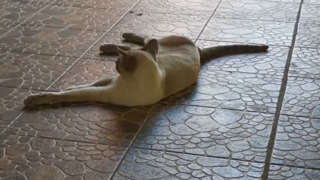 Кот лежит, жарко. сиамский ориентал Даллас