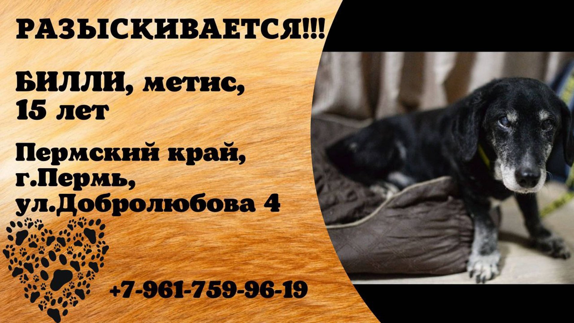 Пропала собака! БИЛЛИ. Метис. 15 лет.Пермский край, г.Пермь